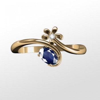Arany eljegyzési gyűrű kék Zafírral és gyémánttal (BRK-121) (brk-121)